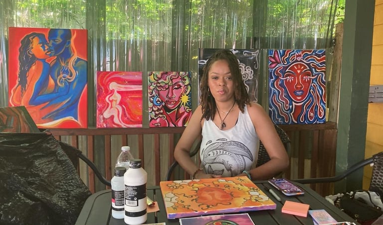 Before our official founding in 2023, Where My Girls Art was already alive — taking shape in the founder’s living room, which became a sanctuary for emerging artists and young art lovers to connect, create, and grow.